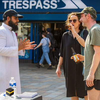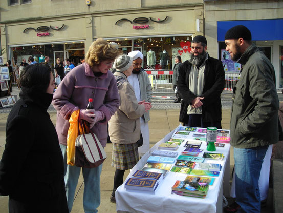 The CF Dawah stand has been running since November 2002 Alhamdulillah. It is aimed at both Muslims and Non-Muslims and has been set up to promote a true understanding of Islam in times of miscommunication and misinformation. We not only distribute free written information on Islam but also have volunteers support & promote dialogue. Our CF Dawah team Alhamdulillah has been involved both directly and indirectly with administering numerous Shahadah's both on and off our weekly Dawah information stand held in the Center of Sheffield.